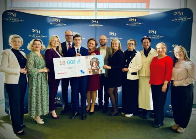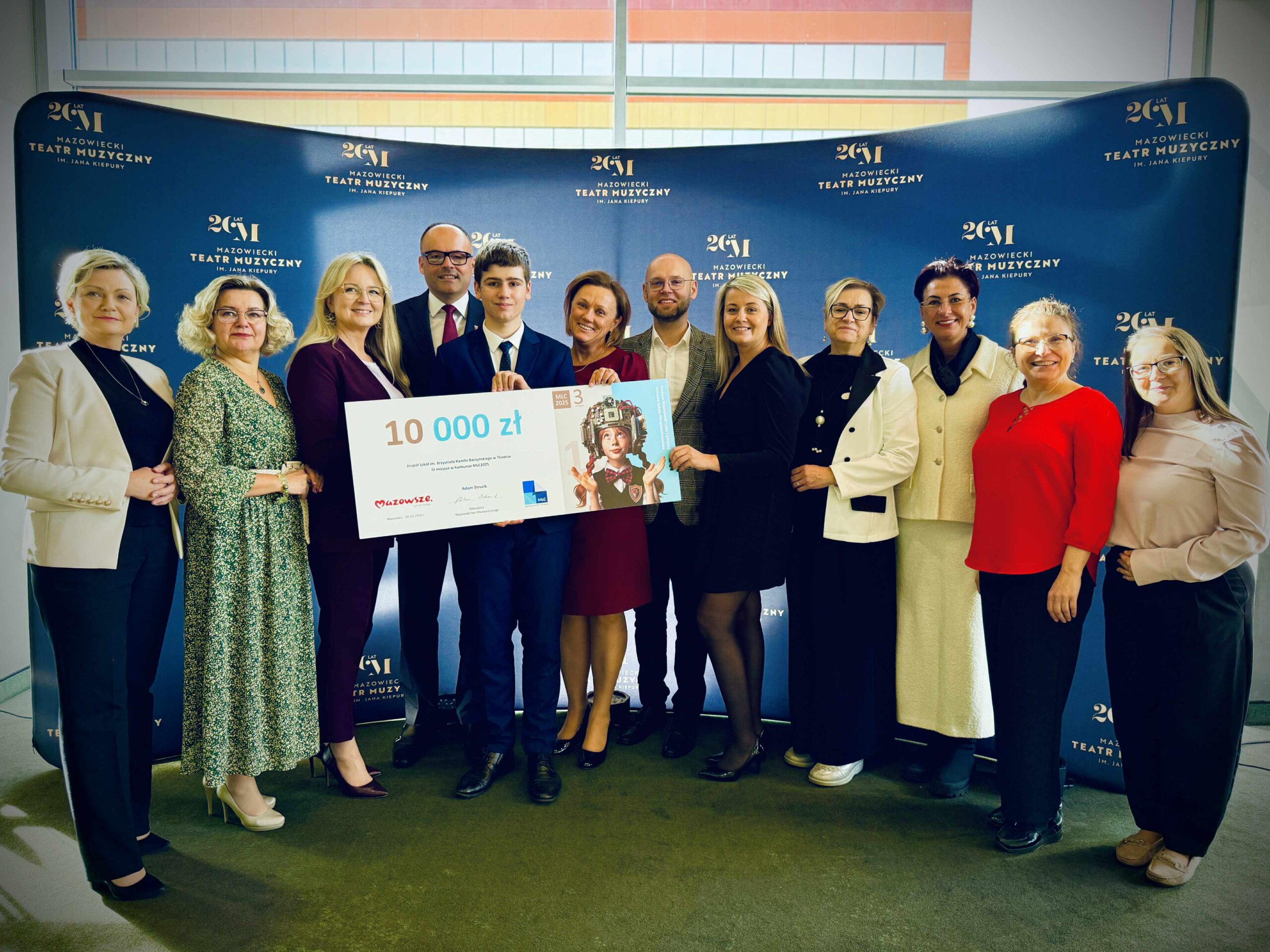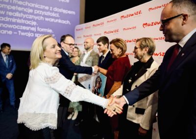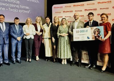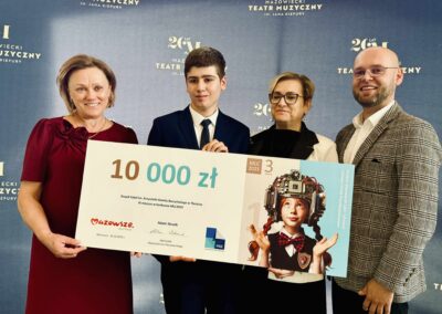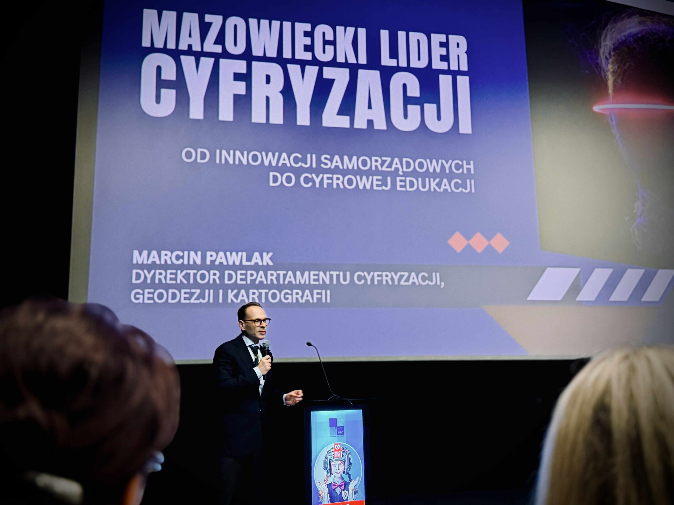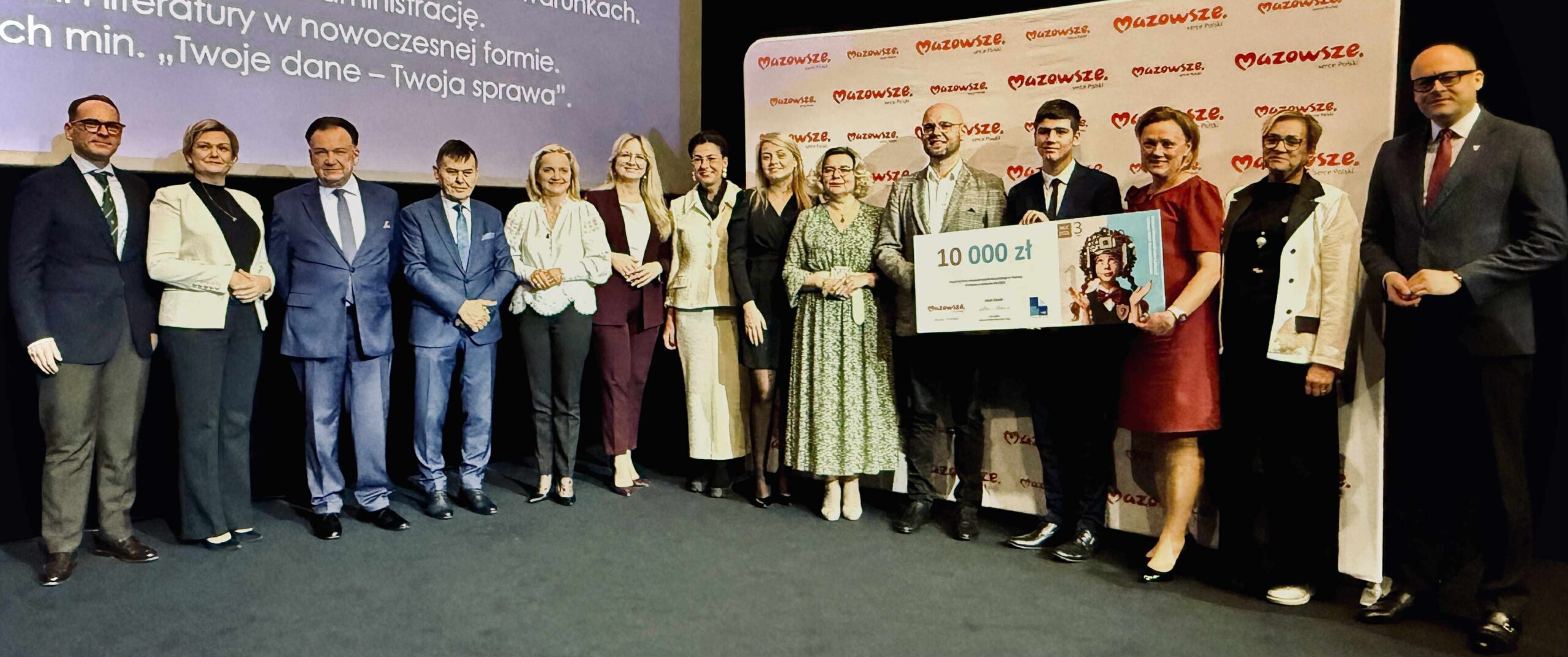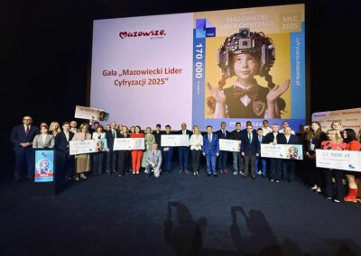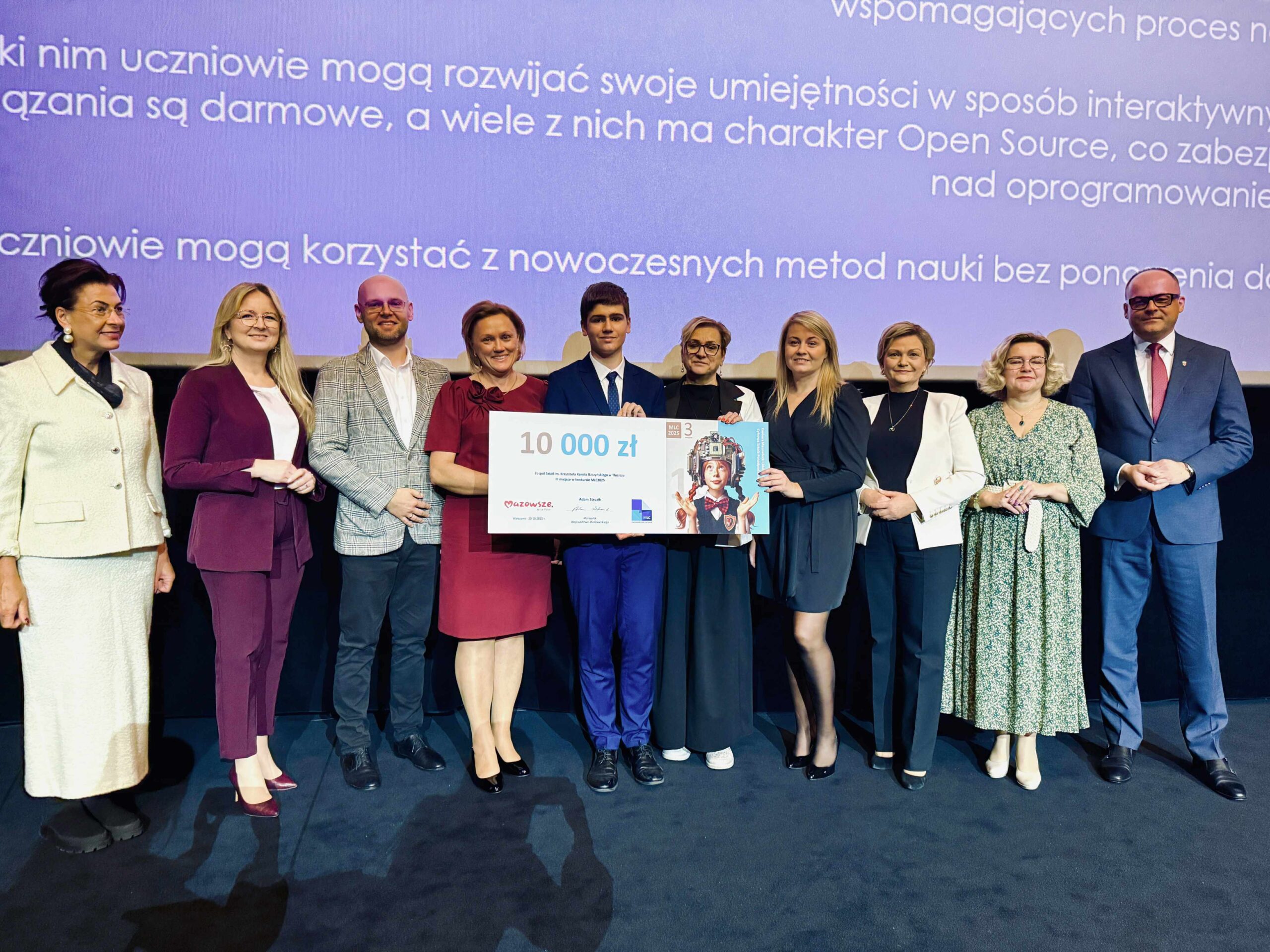 30 października 2025r. reprezentacja Zespołu Szkół im. K.K.Baczyńskiego w Tłuszczu w składzie: Dyrektor Anna Białek – Kowalska, Wicedyrektor Marek Leszcz, Kierownik Szkolenia Praktycznego Renata Miszczuk, Ewa Żmudzka, Kierownik Gospodarczy Marta Przybysz i reprezentant uczniów Jeremiasz Tucholski uczestniczyła w gali finałowej konkursu „Mazowiecki Lider Cyfryzacji 2025”, podczas której Marszałek Mazowsza Adam Struzik oraz Mazowiecka Kurator Oświaty Wioletta Krzyżanowska uhonorowali instytucje i szkoły wdrażające nowatorskie i bezpieczne rozwiązania cyfrowe w edukacji. Wraz z naszą reprezentacją szkolną na uroczystości pojawili się przedstawiciele organu prowadzącego szkołę, czyli Powiatu Wołomińskiego – Starosta Arkadiusz Werelich oraz Wicestarosta Katarzyna Pazio oraz Gminy Tłuszcz – Burmistrz Beata Skulimowska.