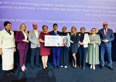 Do konkursu w ramach szkół podstawowych zgłosiło się 18 szkół a ze szkół ponadpodstawowych 19 placówek. Jesteśmy niesamowicie dumni, ponieważ Zespół Szkół im. K.K.Baczyńskiego w Tłuszczu zajął w kategorii „Cyfrowa Szkoła Ponadpodstawowa” III miejsce za realizację projektu „EduFuture – Cyfrowa Szkoła Przyszłości”. Nagrodą był bon na kwotę 10000zł. Za pieniądze te zostanie stworzomne mobilne studio nagrań, które służyć będzie promocji szkoły. Takie rozwiązanie wykorzystujące nowe technologie cyfrowe wspiera edukację, integrację i rozwój uczniów.