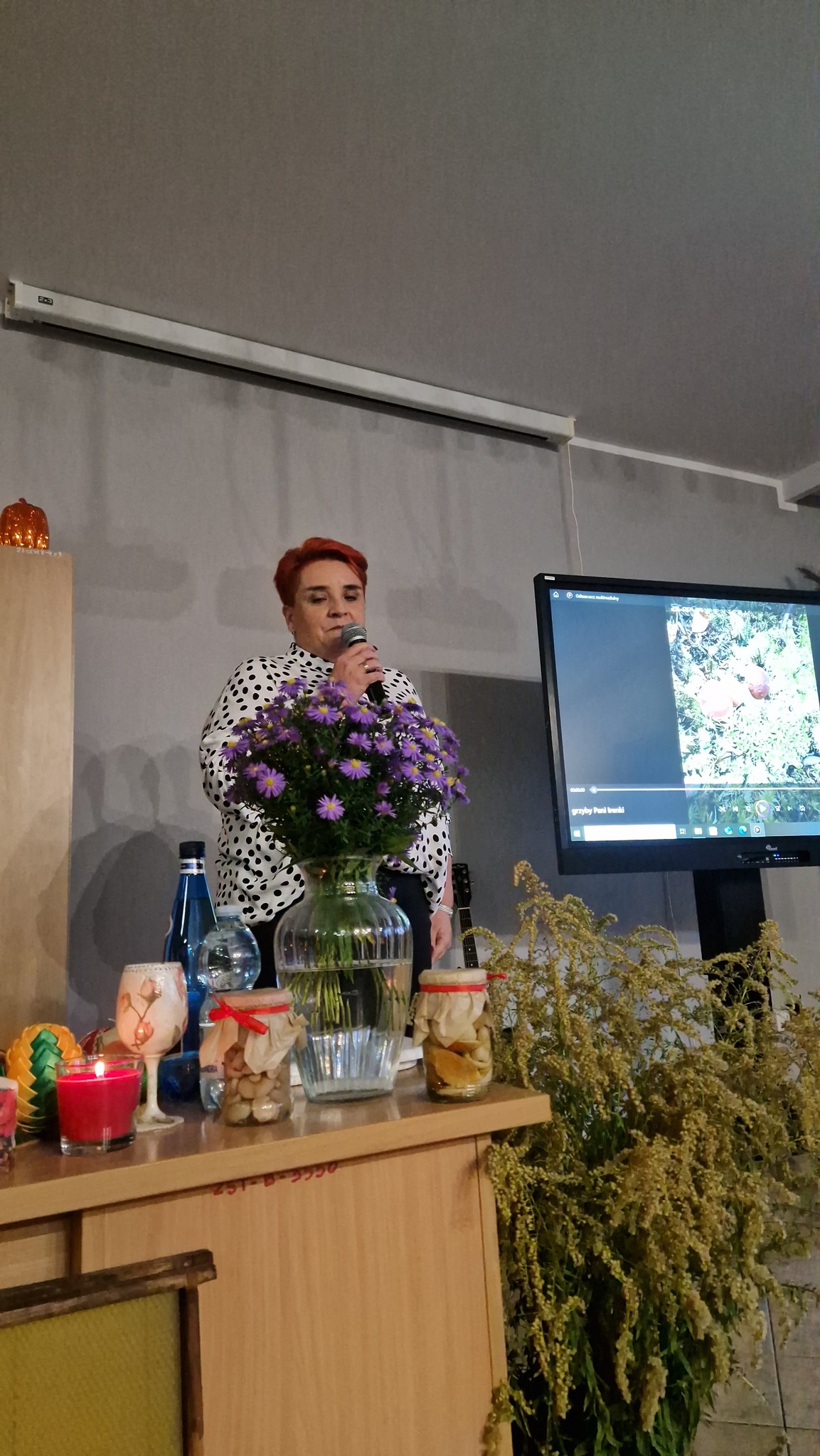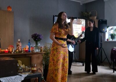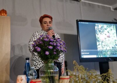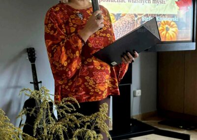 Ostatnim akcentem wieczoru była opowieść o darach jesiennego lasu, czyli o grzybach w wydaniu Ireny Pawlickiej z Nieformalnej Grupy Kijkowej. Gdzie zbierać, ile ta pasja daje radości, jakie przetwory przygotować i czego unikać w lesie – tego dowiedzieliśmy się z opowieści Pani Ireny. A potem była degustacja przetworów z grzybów i piosenka wykonana przez Natalię Wójcik „Dni, których nie znamy”.