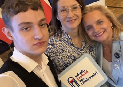 Kto może zyskać takie wyróżnienie? Otóż otrzymują je szkoły, które w codziennej pracy kierują się empatią i szacunkiem wobec uczniów, wspierają ich rozwój oraz dbają o potrzeby i prawa młodych ludzi oraz o ich bezpieczeństwo w każdym wymiarze, rozwijają pasje i zainteresowania. Tego tytułu nie da się zdobyć dzięki pracy jednej czy kilku osób; musi to być działanie całej społeczności. Fakt, że nasze wysiłki zostały docenione, świadczy o tym, że wspólnie tworzymy szkołę pełną dobra, odpowiedzialności i ludzkiego ciepła.