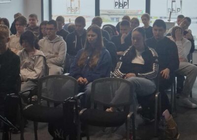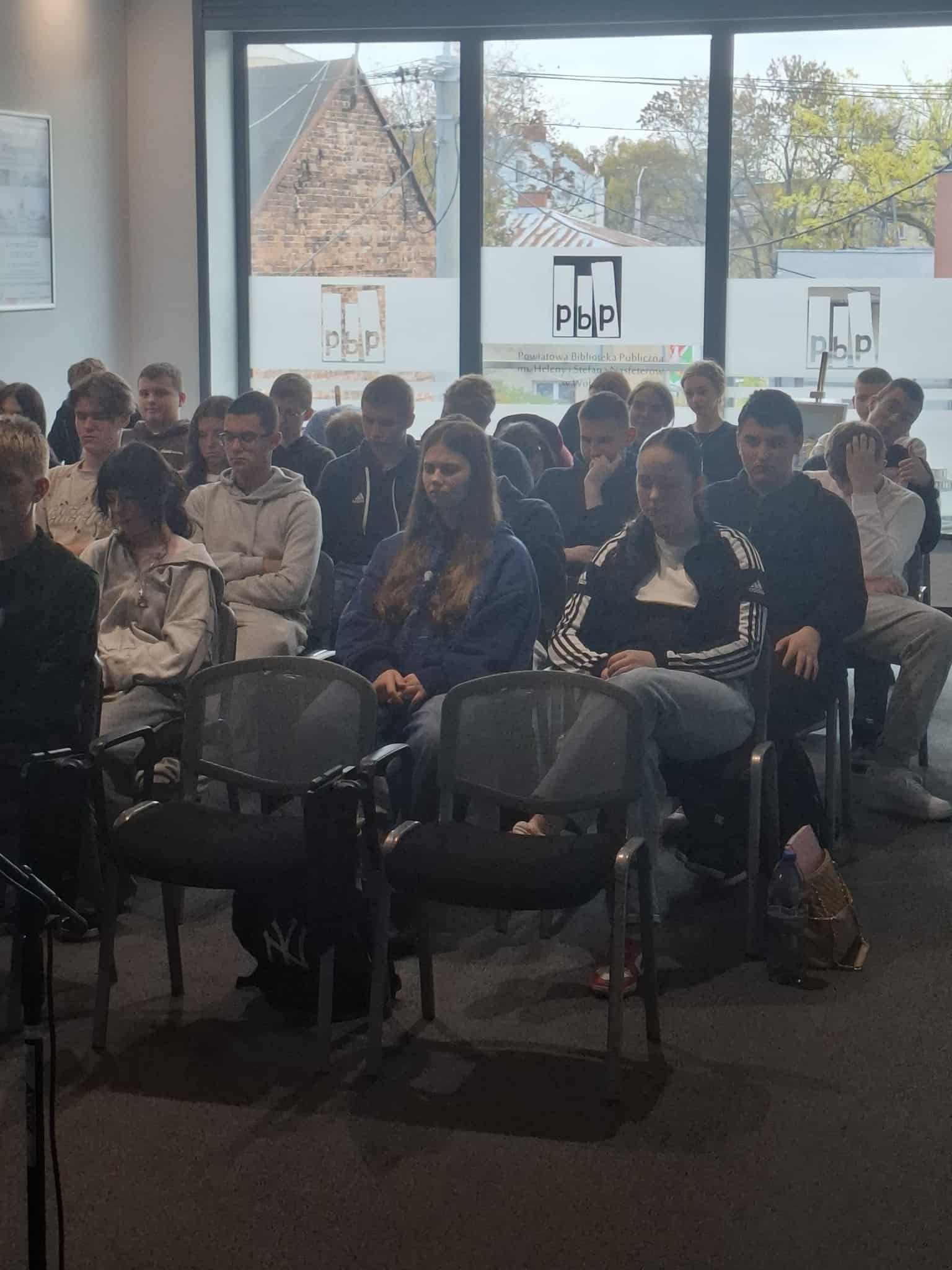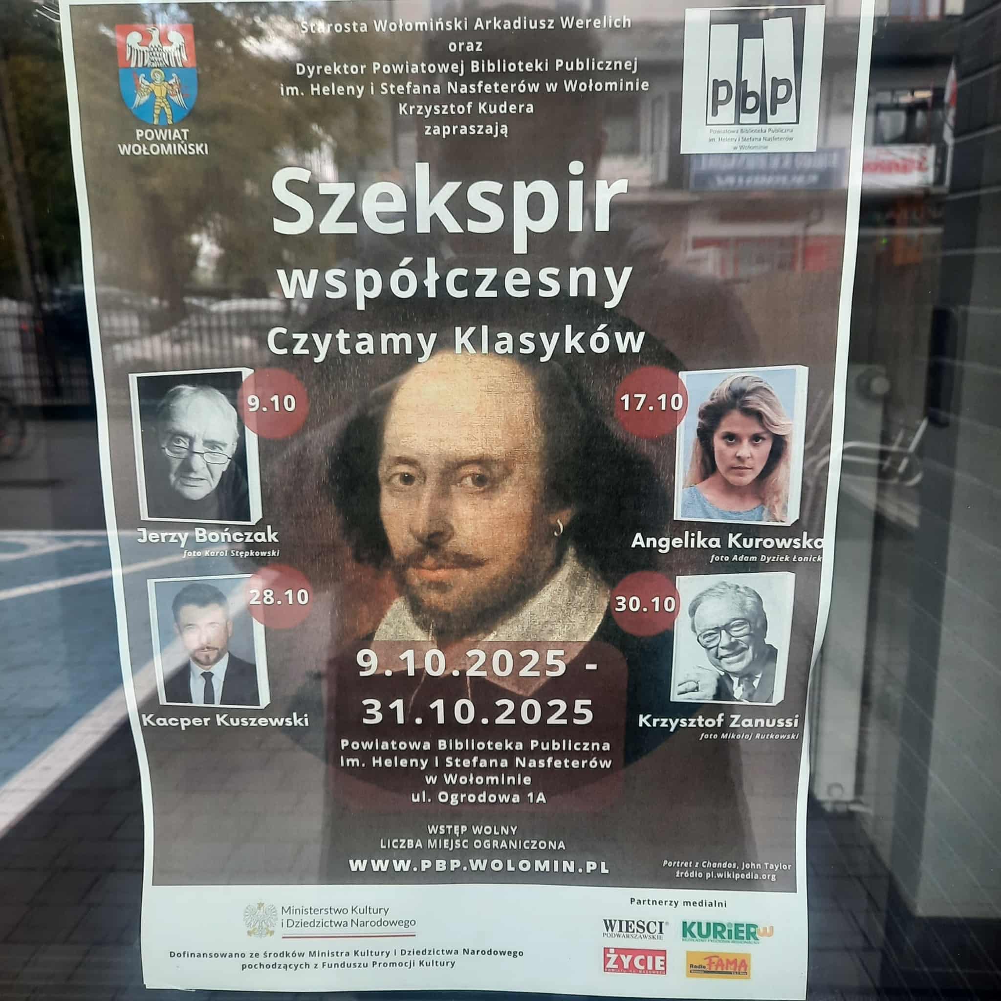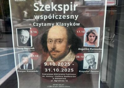 17 października 2025r. wzięli udział w spotkaniu, które odbyło się w Powiatowej Bibliotece Publicznej im. Heleny i Stefana Nasfeterów w Wołominie. Wydarzenie miało formę warsztatów szekspirowskich a poprowadziła je znana aktorka Angelika Kurowska. Był to doskonały czas, by posłuchać o doświadczeniach zawodowych artystki, poznać kulisy pracy aktora czy zrozumieć rolę literatury w tworzeniu kreacji scenicznej. Uczniowie mieli również okazję wziąć udział w ćwiczeniach z interpretacji tekstu oraz ekspresji emocji. To bardzo ważne, by przełamywać swoje obawy i ograniczenia czy rozwijać już istniejące pasje.